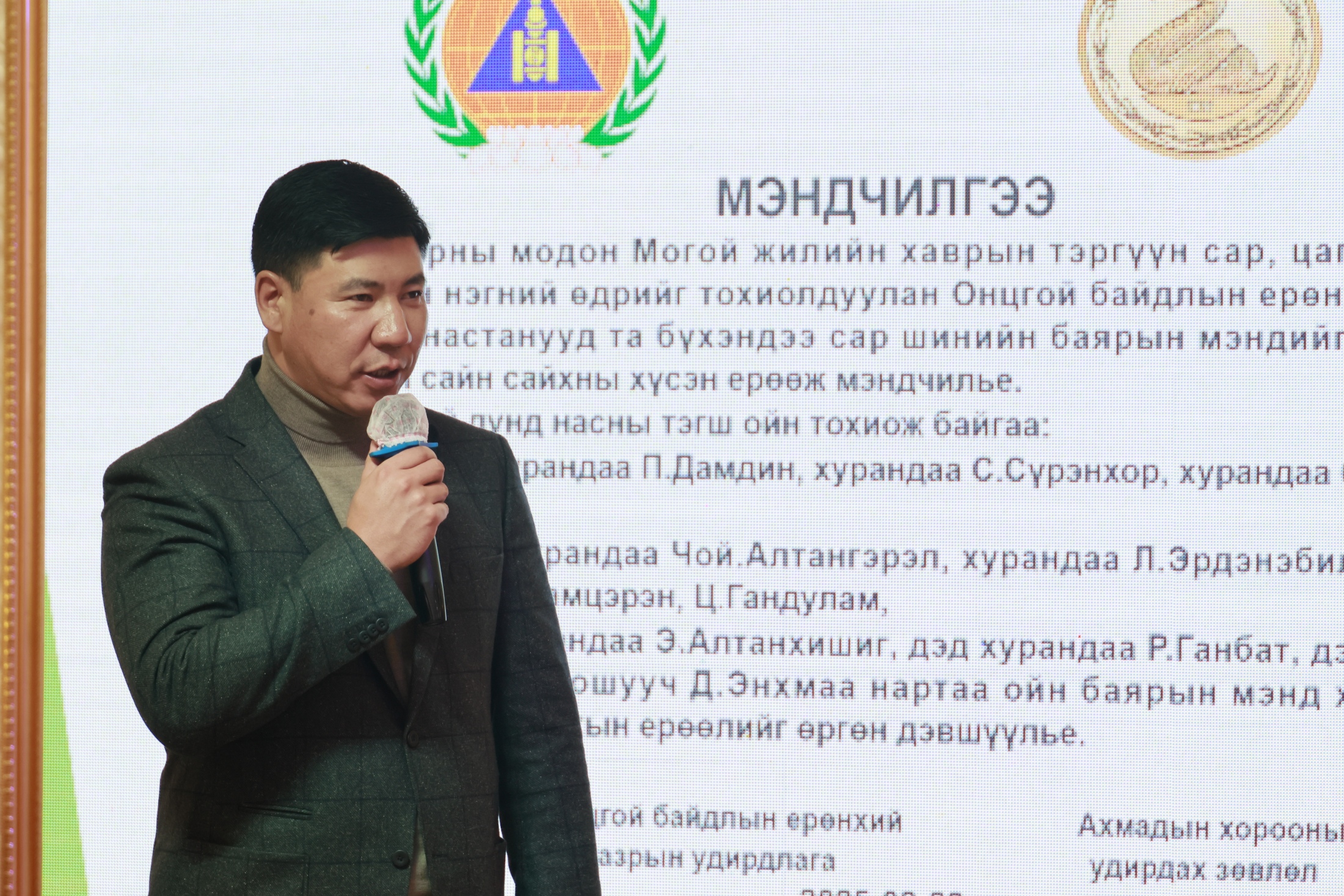 Энэ үеэр 60, 70, 80 насны тэгш ой тохиож байгаа ахмадуудад гарын бэлэг гардуулж, Ахмадын хорооны “Ахмадын алдар” тэмдгээр 5 хүнийг шагнаж, урамшууллаа.