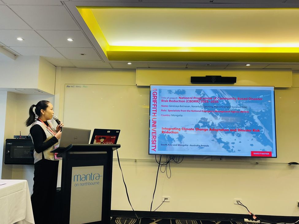 Австрали улсын Брисбан хотноо зохион байгуулагдсан “Уур амьсгалын өөрчлөлтөд дасан зохицох, гамшгийн эрсдэлийг бууруулах арга хэмжээг нэгтгэн хэрэгжүүлэх, эмзэг байдлыг бууруулах нь” сэдэвт богино хугацааны олон улсын сургалтад ОБЕГ-ын бүтцийн нэгжийн холбогдох мэргэжилтнүүд хамрагдлаа.