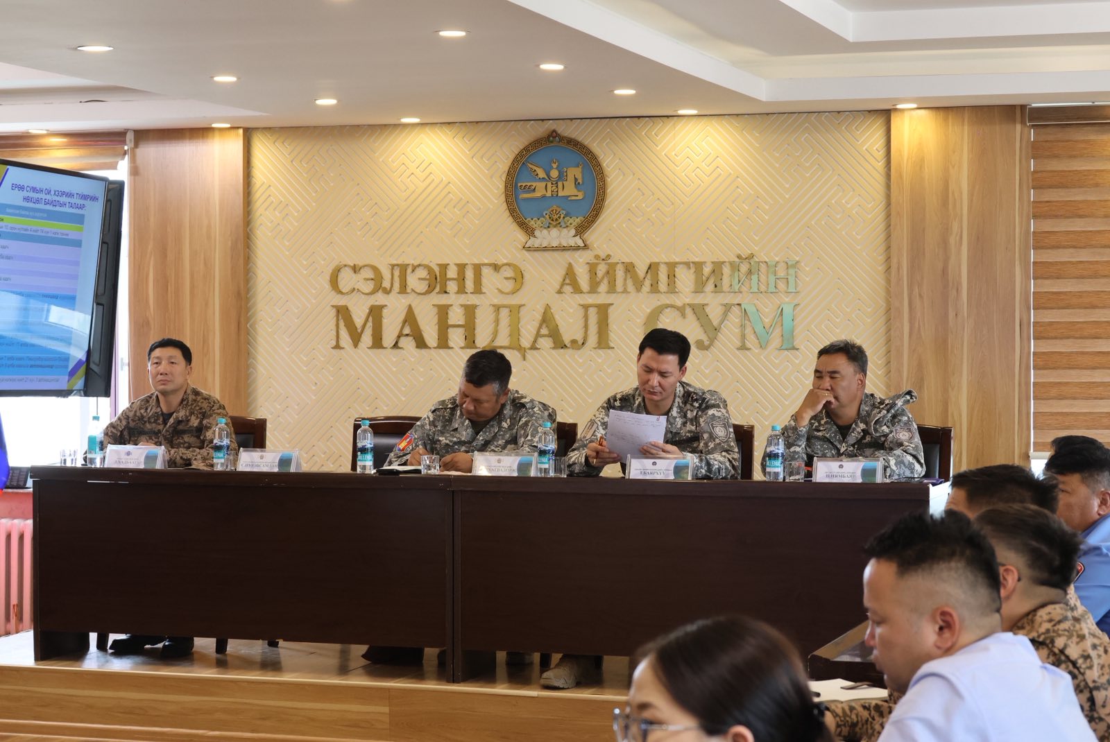 УОК-ын Нарийн бичгийн дарга, хурандаа Т.Баярхүү, ОБЕГ-ын Гал түймэртэй тэмцэх газрын дарга, хурандаа Ц.Нямбаяр нар Сэлэнгэ аймгийн Мандал суманд ажиллаж, сумын Онцгой комиссыг хуралдуулан, холбогдох үүрэг чиглэлийг өглөө.