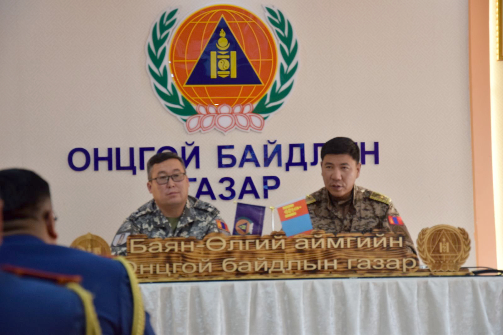 ОБЕГ-ын тэргүүн дэд дарга бөгөөд штабын дарга, бригадын генерал Ц.Ганзориг Баян-Өлгий аймгийн Онцгой байдлын газарт ажиллаж, албаны үйл ажиллагаа, аврах ажиллагаанд ашиглаж байгаа техник хэрэгсэлтэй танилцаж, алба хаагчидтай уулзалт хийлээ.