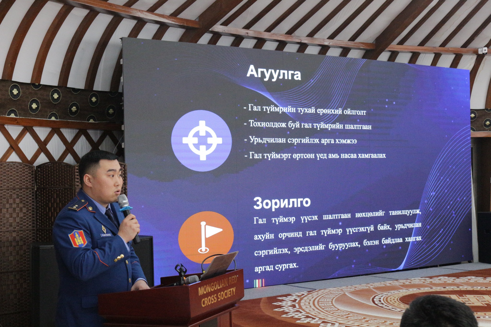 Гамшгаас урьдчилан сэргийлэх, гамшгийн бэлэн байдлыг хангах чиглэлээр олон нийтэд сургалт, сурталчилгаа явуулах, анхны тусламж үзүүлэх мэдлэг чадварт суралцсан тус сургагч багш нар аймаг, дүүргийн Улаан загалмайн дунд шатны хороонд сайн дурын идэвхтнийг сургаж дадлагажуулахад дэмжлэг үзүүлж ажиллана.