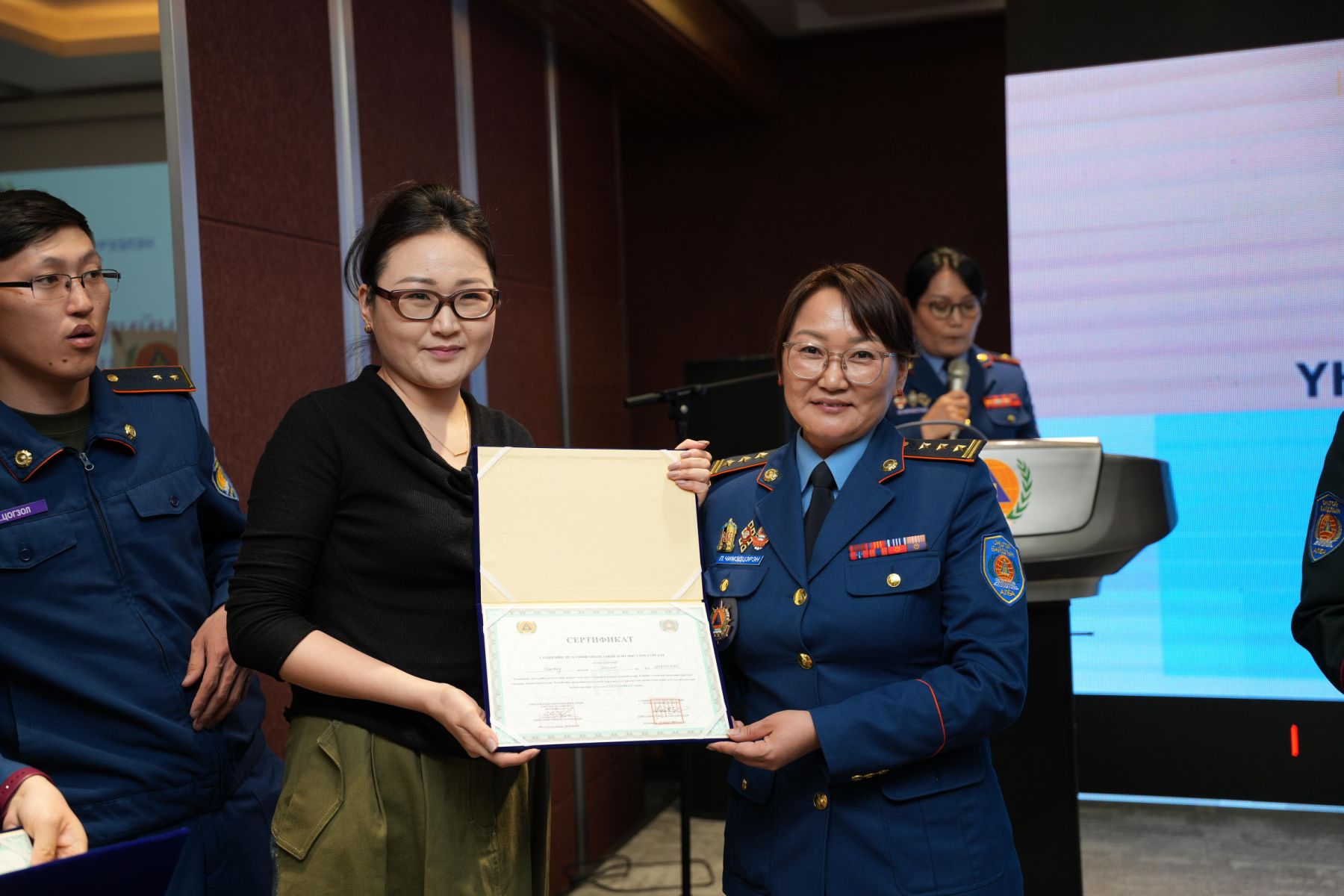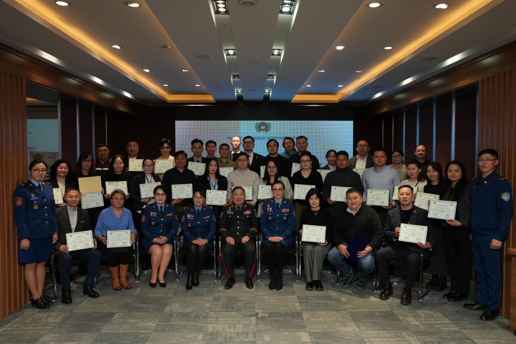 ОБЕГ-ын дэд дарга, хурандаа Ц.Уранчимэг хэлсэн үгэндээ " Дэлхий дахинд уур амьсгалын өөрчлөлт, хүний буруутай үйл ажиллагаа болон байгалийн гаралтай аюулт үзэгдэл нэмэгдэж байна. Тиймээс аливаа эрсдэлийг үнэлэх, түүнээс урьдчилан сэргийлэх нь үүсэж болзошгүй эрсдэлийг бууруулах ач холбогдолтой юм. Та бүхэн өнөөдөр энэ чиглэлээр мэргэшиж, гэрчилгээгээ гардан авлаа. Цаашид мэргэжлийн ёс зүйтэй, мэргэшсэн байдлаар ажиллаж, үүрэг, хариуцлагаа өндөр түвшинд хэрэгжүүлнэ гэдэгт итгэлтэй байна" гэлээ.
