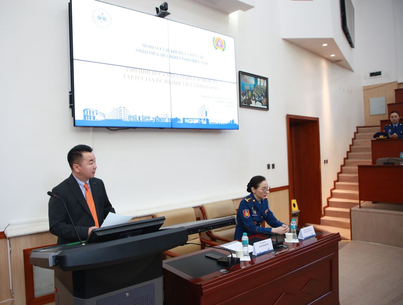 ОБЕГ-ын дэд дарга, хурандаа Ц.Уранчимэг тус арга хэмжээнд оролцож хэлсэн үгэндээ “Алсын хараа-2050” хөгжлийн бодлогын хүрээнд Онцгой байдлын байгууллага хүний нөөцийн чадавхыг тасралтгүй сайжруулах, оюуны өндөр мэдлэг боловсролтой, чадварлаг, мэргэжлийн ур чадвартай алба хаагчдыг бэлтгэх хөтөлбөр боловсруулан ажиллаж байна. Төрийн албан хэрэг хөтлөлтийг 2025 оноос монгол бичгээр хөтлөх болсон нь монгол хэл, бичигт зайлшгүй суралцах шаардлага үүсэж байна. Мөн Онцгой байдлын байгууллага ОХУ, БНСУ, БНХАУ, БНПУ, Франц, Турк, АНУ зэрэг гадаад хамтын ажиллагаа өдрөөс өдөрт өргөжин тэлж олон улсын хамтарсан дадлага сургууль болон мэргэжил дээшлүүлэх академи, курсуудэд хөтөлбөрт хамрагдахад алба хаагчдыг англи хэл байх зайлшгүй шаардлагыг бий болгож байна. Энэхүү сургалтыг оновчтой төлөвлөн, зохион байгуулсан МУИС-ийн удирдлага, эрдэмтэн доктор, профессор, багш сурган хүмүүжүүлэгч та бүхэндээ ОБЕГ-ын даргын зөвлөлийн гишүүдийн нэрийн өмнөөс болон хувиасаа талархал илэрхийлье” гэлээ.