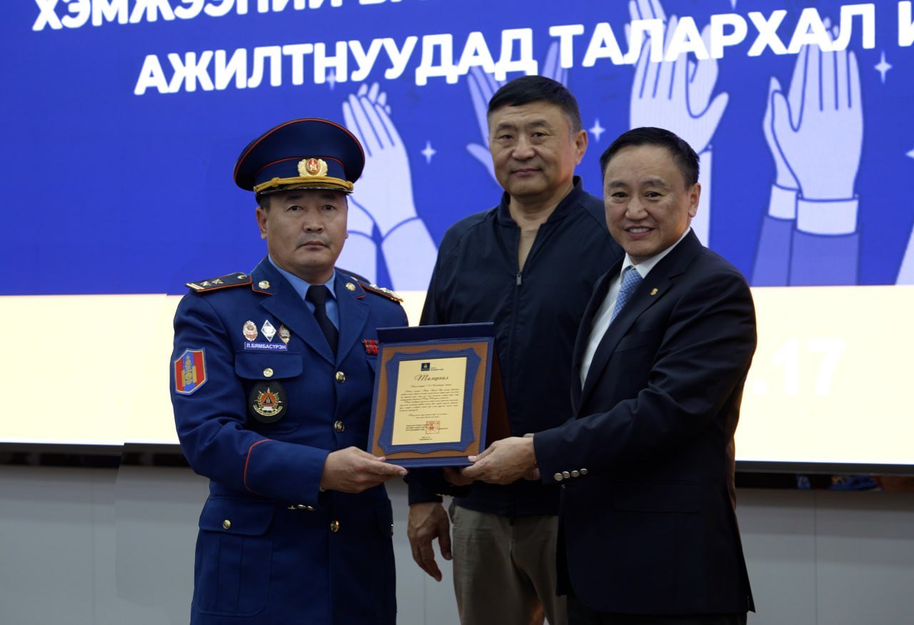 Шинэ мэдээТус талархлыг Хөвсгөл аймгийн Онцгой байдлын хэлтсийн Гамшгаас хамгаалах улсын хяналтын ахлах байцаагч, дэд хурандаа Л.Бямбасүрэнд хүртээсэн юм.
