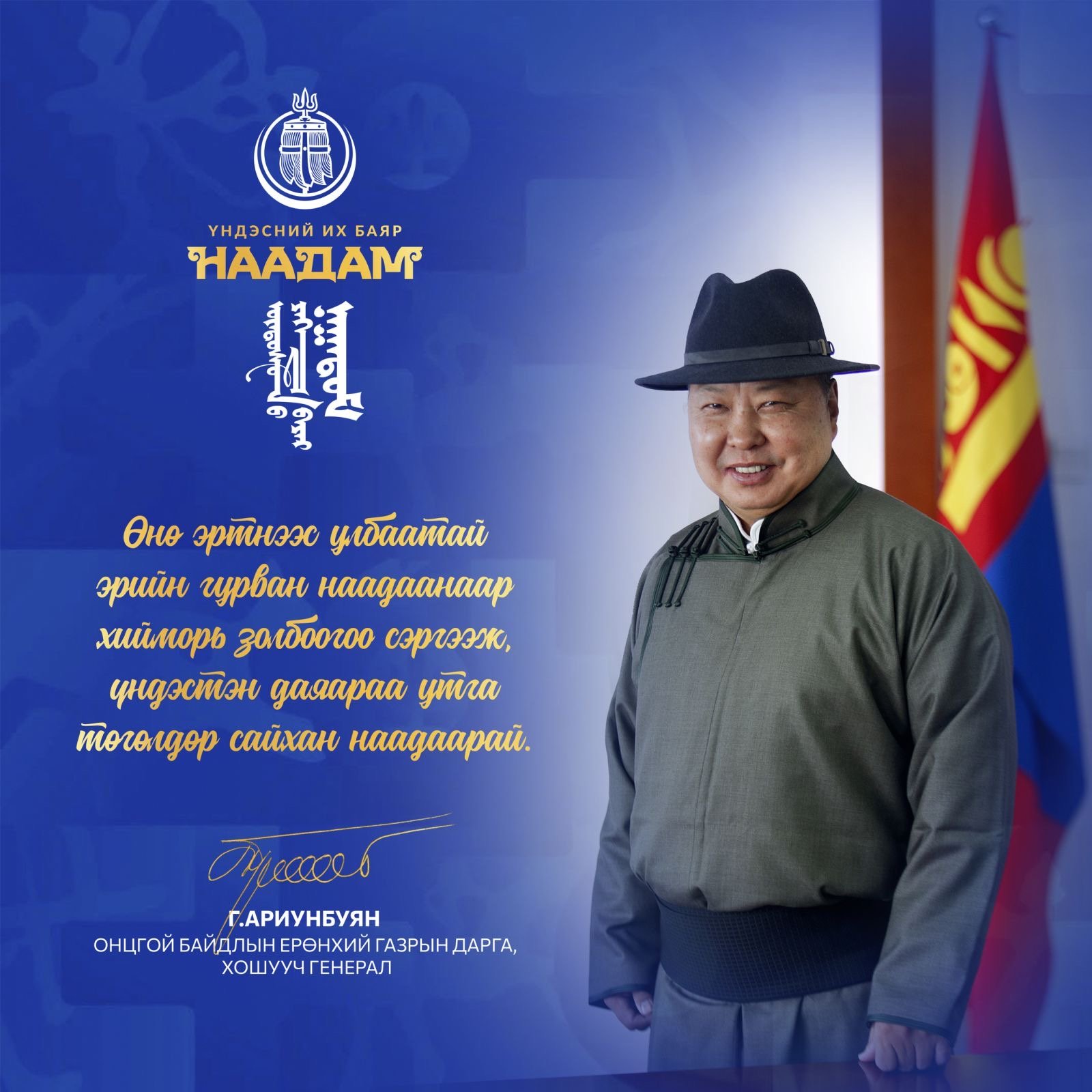 Шинэ мэдээҮндэсний их баяр наадмын өдрүүдэд ч гамшгаас урьдчилан сэргийлэх, авран хамгаалах, хойшлуулашгүй сэргээн босгох ажиллагаанд 24 цагаар өндөржүүлсэн бэлэн байдалд үүрэг гүйцэтгэж, эх орон, эгэл түмнийхээ аюулгүй байдлыг сахин хамгаалан ажиллаж байгаа нийт алба хаагчдадаа гүнээ талархал илэрхийлье.