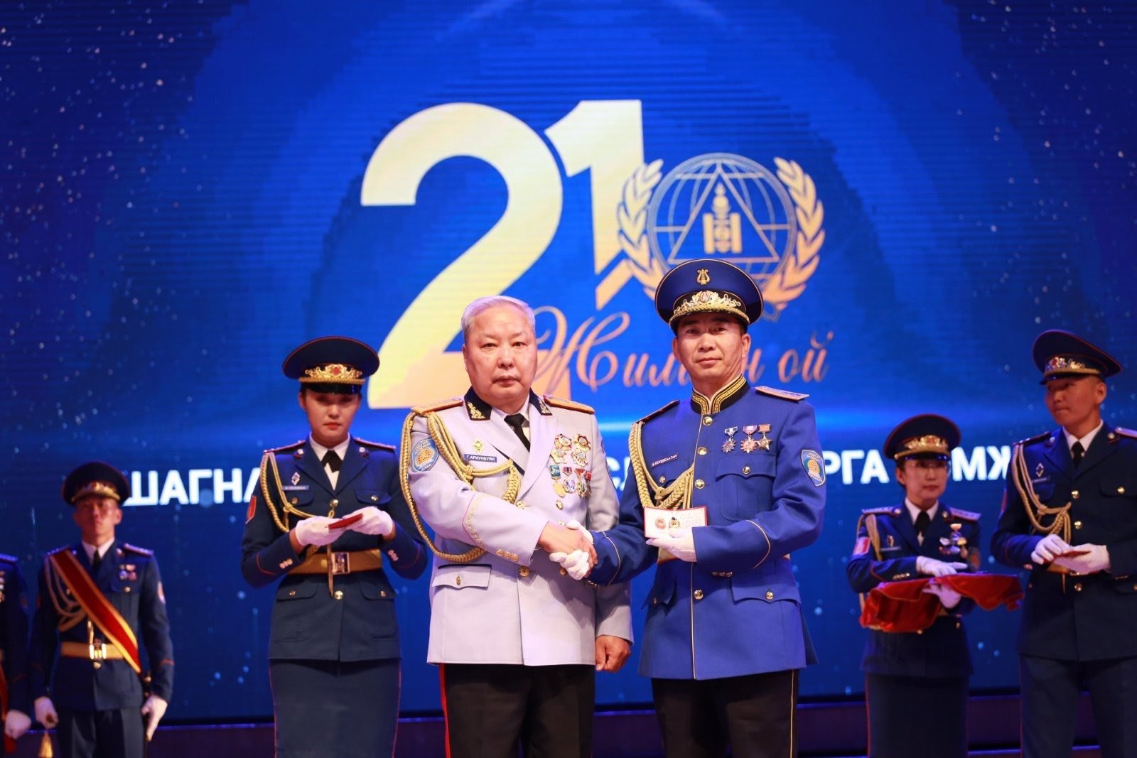 Шинэ мэдээШагналыг Монгол Улсын Шадар сайд С.Амарсайхан, ОБЕГ-ын дарга, хошууч генерал Г.Ариунбуян, ОБЕГ-ын тэргүүн дэд дарга бөгөөд дэд дарга, хурандаа Ц.Ганзориг нар гардуулан, баяр хүргэлээ.