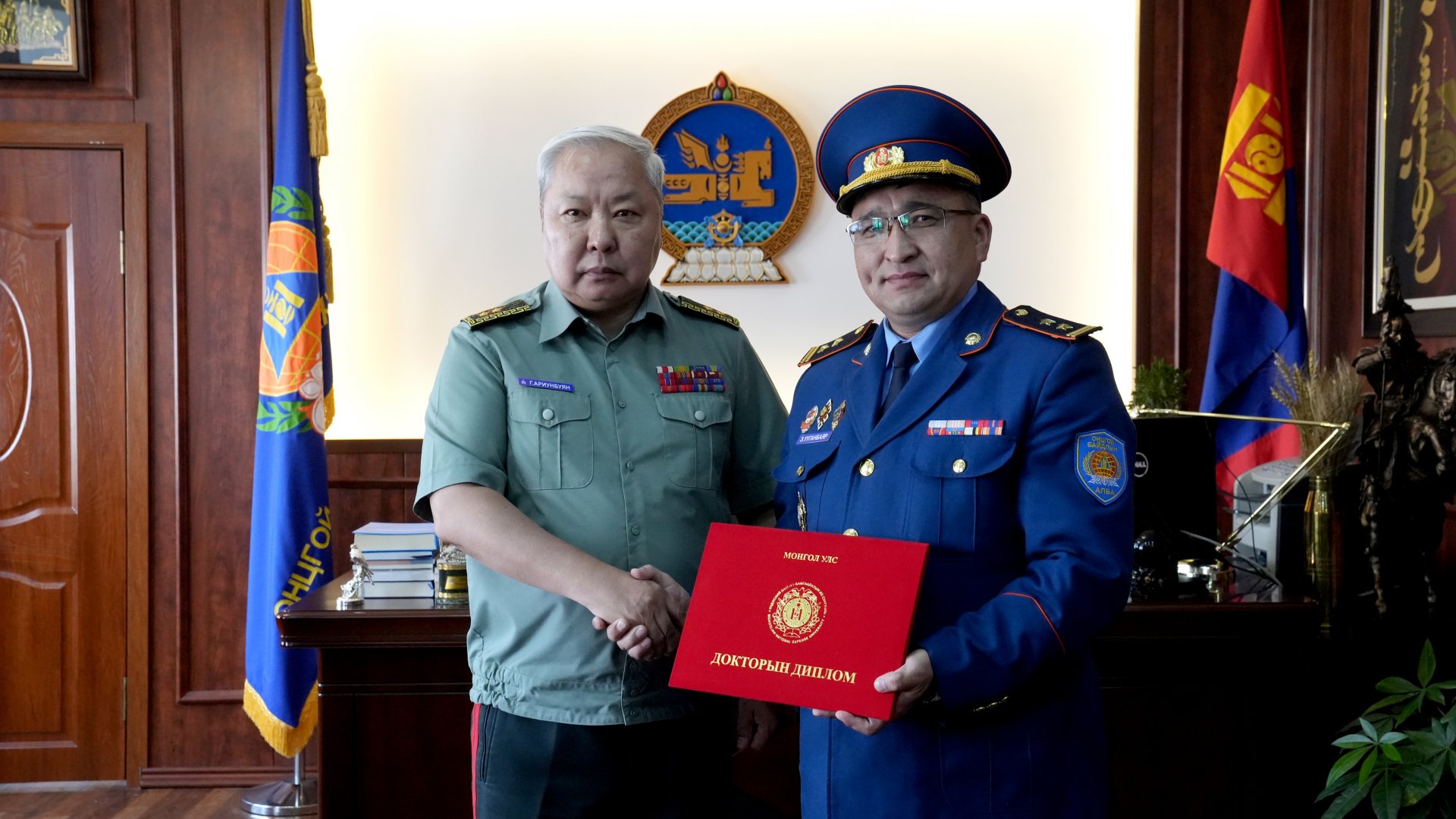 Шинэ мэдээДэд хурандаа Э.Ууганбяар нь өнгөрөгч гуравдугаар сард “Галын аюулгүй байдлын эрсдэлийн удирдлага, түүнийг боловсронгуй болгох арга зам” сэдвээр аюулгүй байдал судлалын докторын зэрэг хамгаалсан юм.