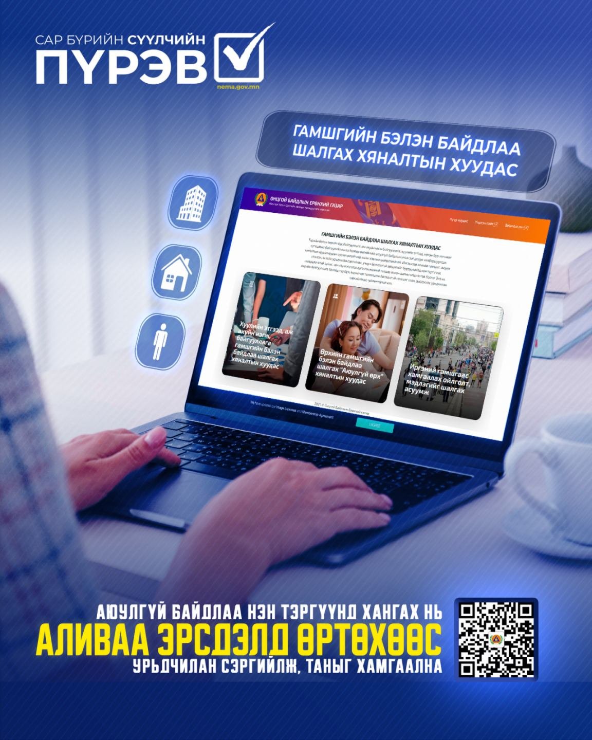 Шинэ мэдээОнцгой байдлын байгууллагын http://quiz.belenbai.mn/ сайтад зочлон, гурван төрлийн хяналтыг хуудсыг бөглөөд нэг үзээрэй.