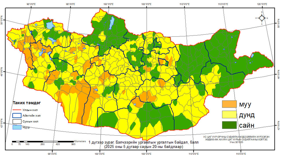 Шинэ мэдээДархан-Уул, Говьсүмбэр, Хэнтий, Дорнодын нийт, Хөвсгөлийн ихэнх, Увс, Булган, Өмнөговь, Сүхбаатарын зарим, Говь-Алтай, Баянхонгор, Өвөрхангай, Сэлэнгэ, Төв, Дорноговийн цөөн сумдын нутгаар хэвийн, бусад нутгаар дунд байна.