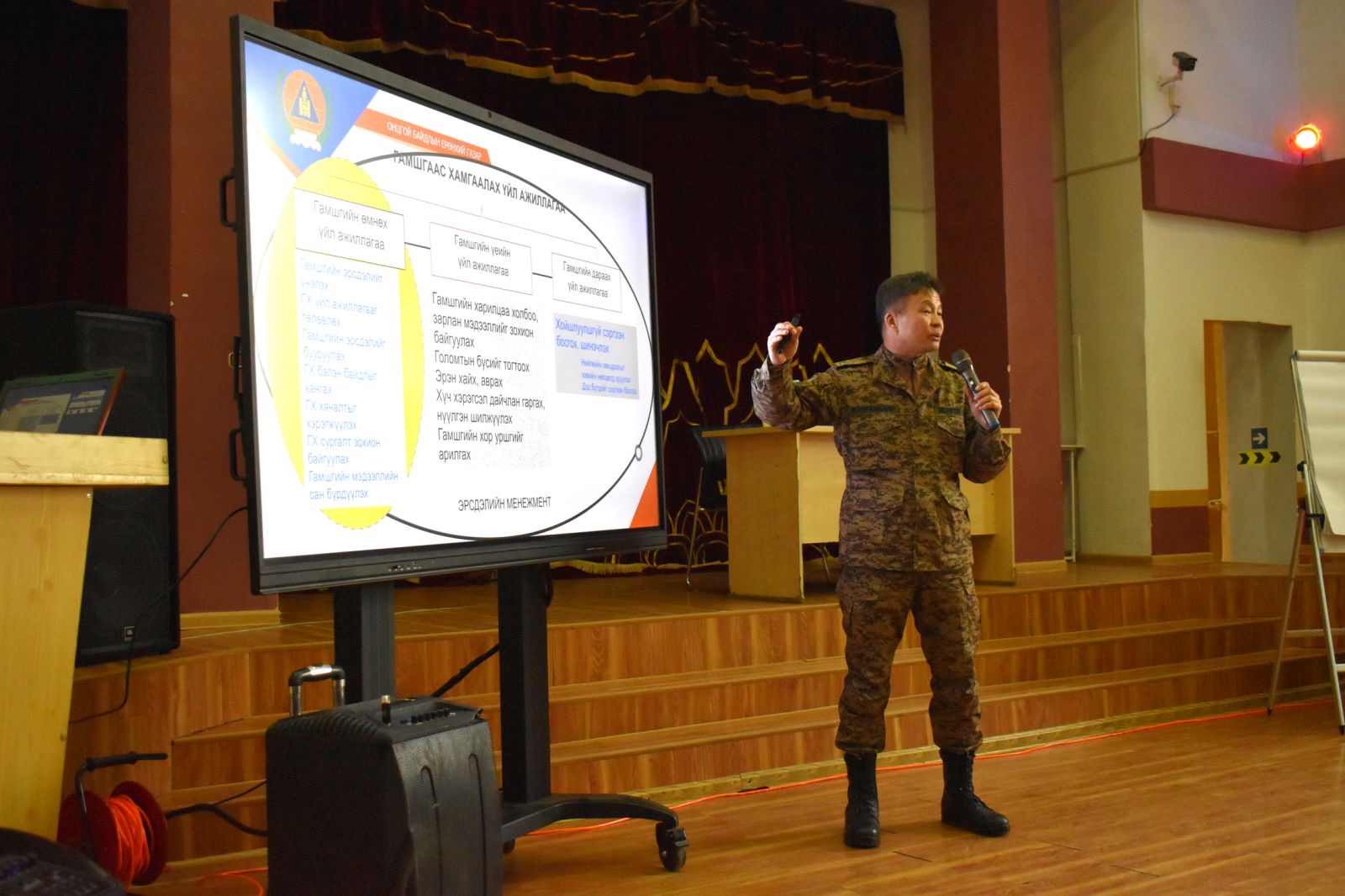 Энэ үеэр ОБЕГ-ын дэд дарга, бригадын генерал Б.Ууганбаяр Онцгой байдлын байгууллагын түүх, онцлог, арга хэмжэээий талаар танилцуулсан юм.