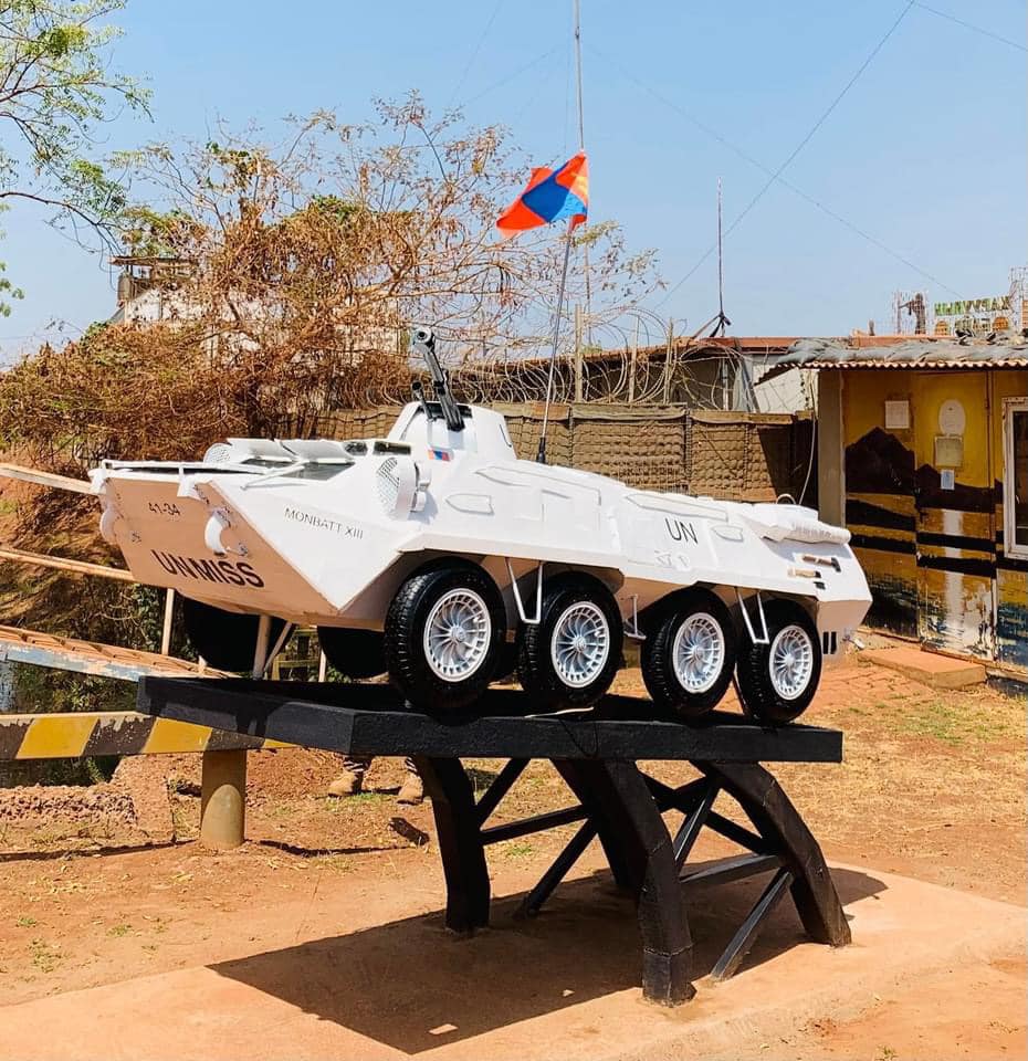 БНӨСУ-д үүрэг гүйцэтгэж байгаа энхийг сахиулагчид өөрсдийн хөлөглөдөг үндсэн зэвсэглэл техник болох БТР-80 хуягт тээвэрлэгчийн дурсгалын загварыг бүтээж, МОНБАТТ-ынхаа угталтын хаалга дээр байрлуулан олноо толилуулсан байна.