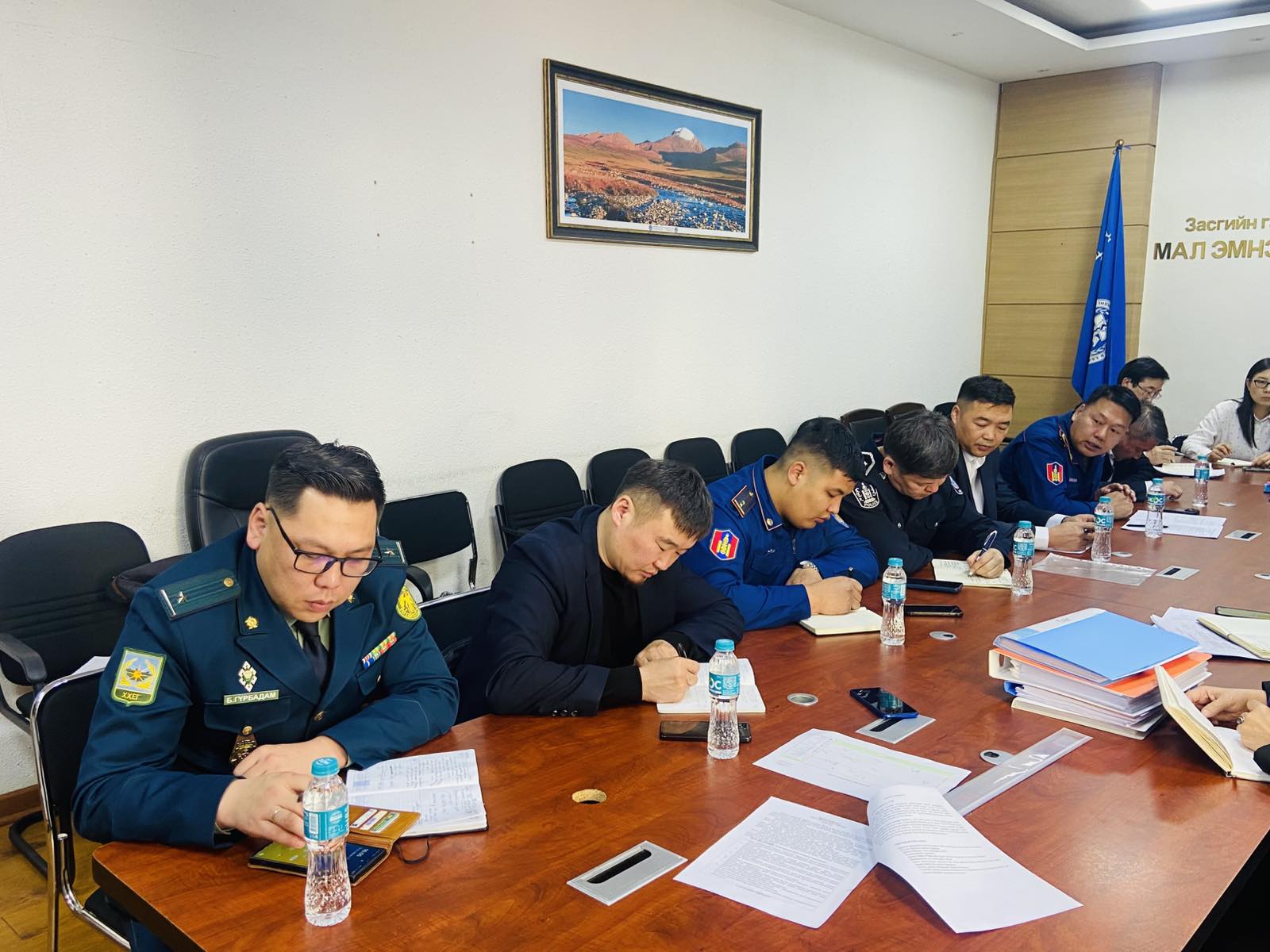 Энэ хүрээнд тус сургуулийн штабын дарга, ОБЕГ-ын Ажиллагааны удирдлагын газрын хэлтсийн дарга, хурандаа Б.Мягмардорж, ажлын хэсгийн гишүүд, БОУАӨЯ, ТЕГ, ЦЕГ, ХХЕГ-ын төлөөллүүд өнөөдөр Мал эмнэлгийн ерөнхий газарт ажиллалаа.