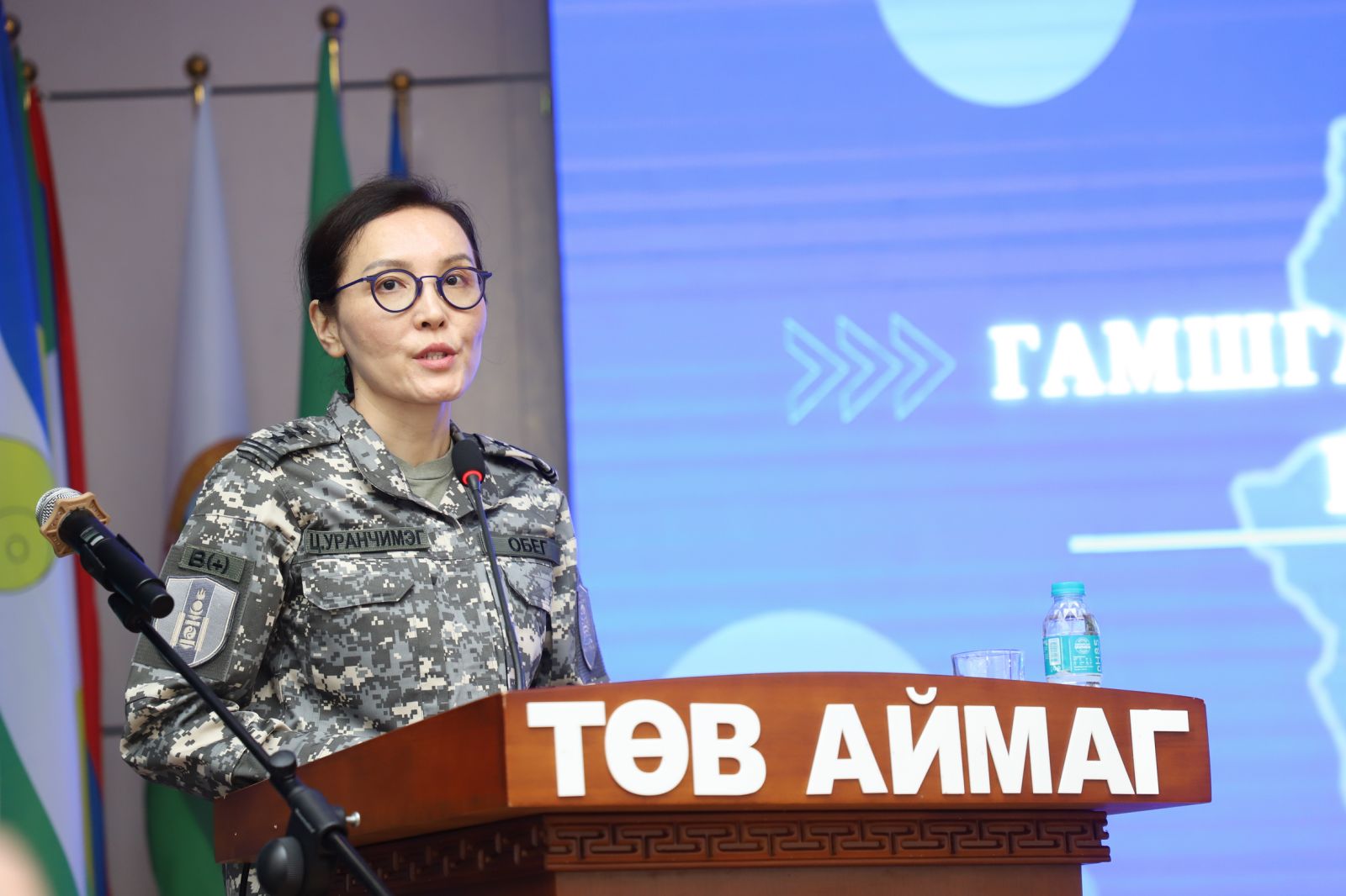 Хурандаа Ц.Уранчимэг хэлсэн үгэндээ “Засгийн газрын 2024-2028 оны үйл ажиллагааны хөтөлбөрт “Үндэсний сөрөн тэсвэрлэх чадавхад дэмжлэг үзүүлэх чиг үүрэг бүхий үндэсний тогтолцоог бий болгох” зорилтыг дэвшүүлж, сөрөн тэсвэрлэх чадавхыг нэмэгдүүлэх, эрсдэлийн удирдлагын реформ хийх арга хэмжээг төлөвлөн, хэрэгжүүлж байна. Үндэсний сөрөн тэсвэрлэх чадавхын нэг бүрэлдэхүүн хэсэг нь гамшгийг сөрөн тэсвэрлэх чадавх юм. Аливаа эрсдэлээс урьдчилан сэргийлэх үйл ажиллагаа, гамшгаас хамгаалах төлөвлөлт, бэлтгэл бэлэн байдал, гамшгаас хамгаалах албадын харилцан уялдаа холбоотой ажиллагааны үр дүнд бид гамшгийн эрсдэлийг хохирол багатай даван туулах бүрэн боломжтой учраас энэ удаагийн гамшгаас хамгаалах команд штабын сургуулийг зохион байгуулж байна” гэлээ.