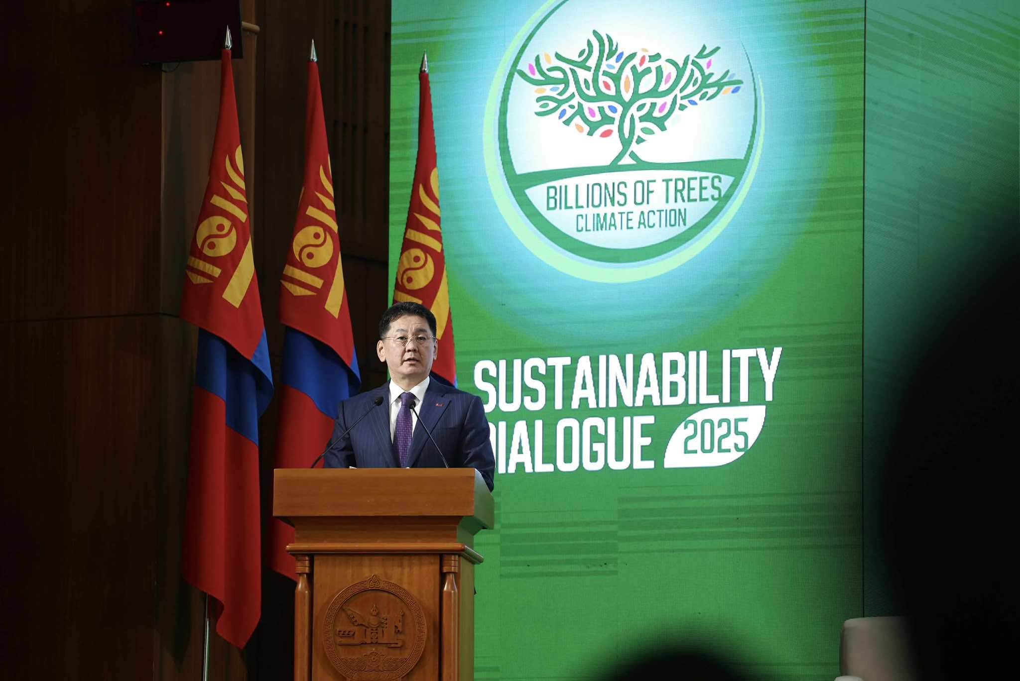 Монгол Улсын Ерөнхийлөгчийн ивээл дор “Тогтвортой байдлын яриа хэлэлцээ 2025-Уур амьсгалын өөрчлөлт: Тэрбуман мод” чуулга уулзалт Төрийн ордонд болж байна.