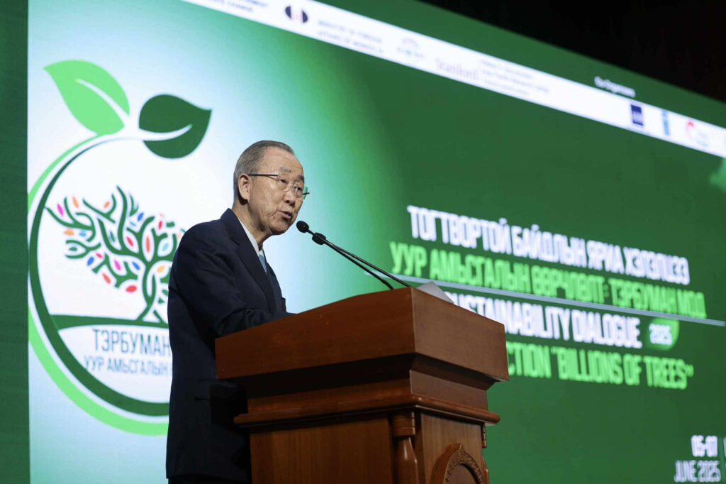 Монгол Улс “Тогтвортой байдлын яриа хэлэлцээ 2025-Уур амьсгалын өөрчлөлт: Тэрбум мод” чуулга уулзалт зохион байгуулж байгаад НҮБ-ын 8 дахь Ерөнхий нарийн бичгийн дарга Бан Ги Мүн талархал илэрхийллээ.