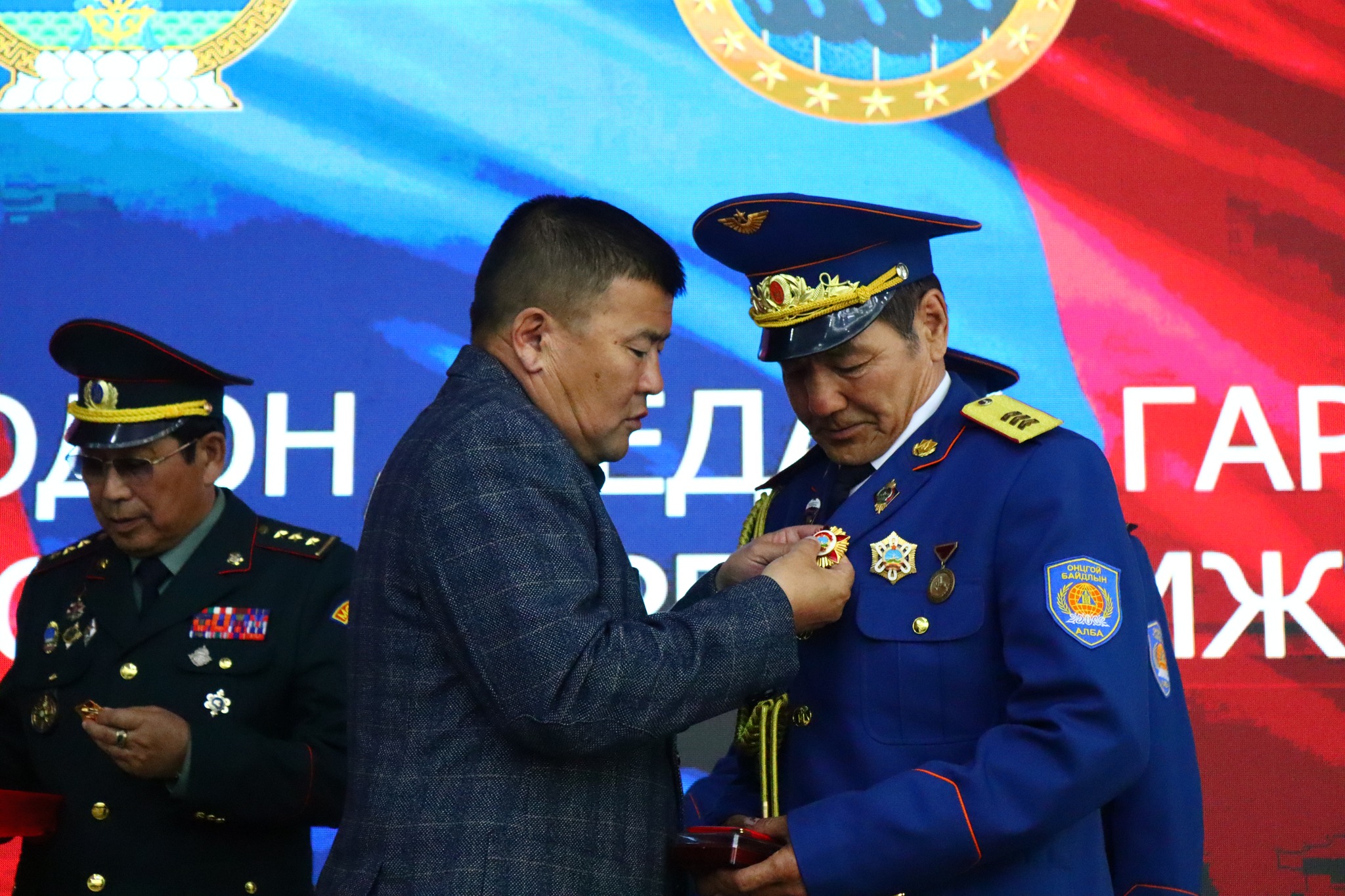 Энэ үеэр аймгийн Иргэний хамгаалалт, байгалийн гамшигтай тэмцэх салбарт 30 жил шүхэрчин аврагчаар ажиллаж 1300 удаагийн гамшгийн болон дадлагын буулт хийсэн ахмад настан Ц.Баярааг “Цэргийн гавьяаны улаан тугийн одон”-оор, Онцгой байдлын байгууллагын ахмад ажилтан Н.Жамсранбазар, Д.Чимэдцогзол, М.Эрхэмбаяр, Г.Жаргалсайхан, Л.Батбаатар, Ч.Бямбажав, Цагдаагийн байгууллагын ахмад ажилтан, хурандаа Р.Болдбаатар нарыг “ Цэргийн гавьяаны одон”-оор тус тус шагналаа.