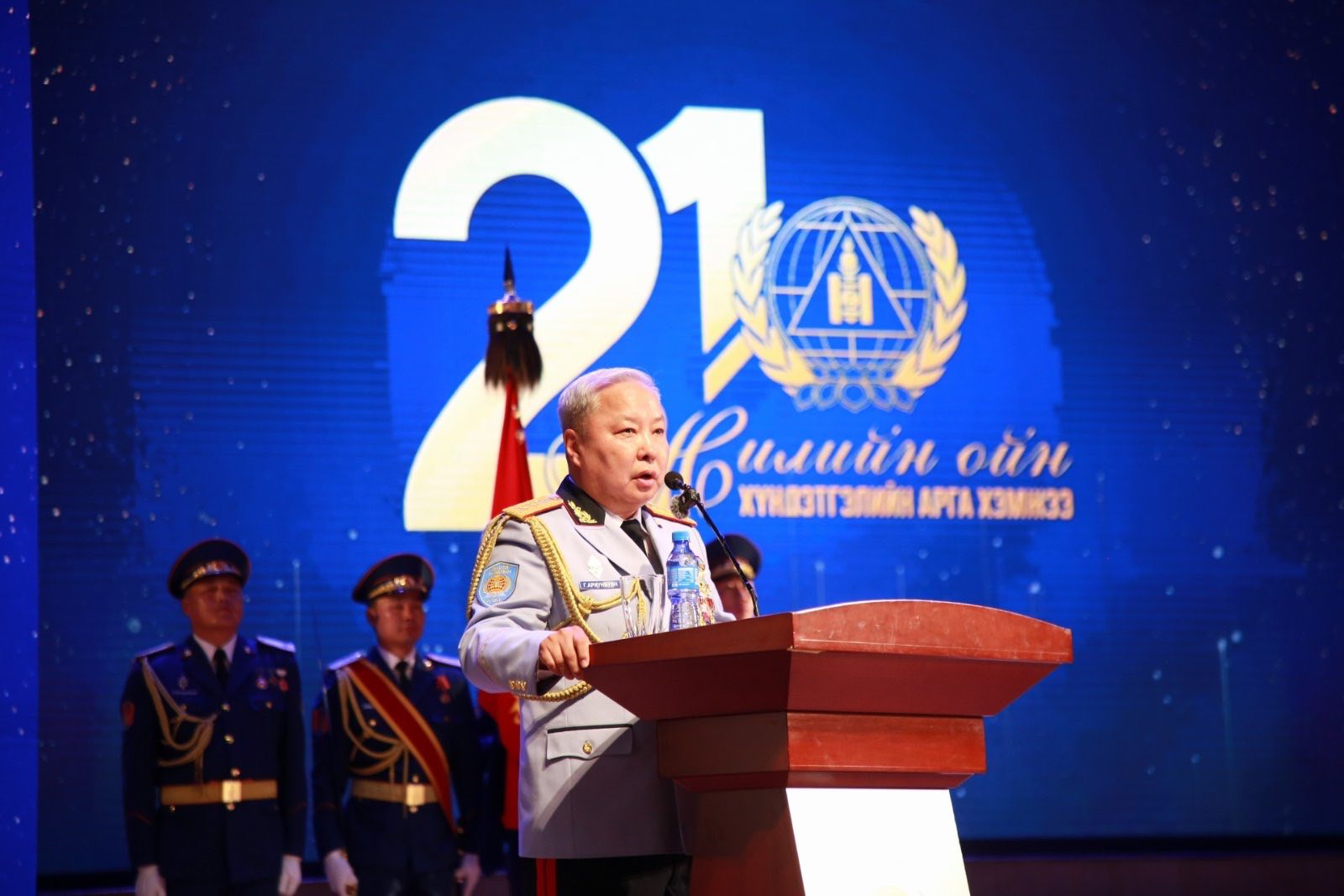 ОБЕГ-ын дарга, хошууч генерал Г.Ариунбуян нээж хэлсэн үгэндээ “Өнгөрсөн 21 жилийн хугацаанд алба хаагчид маань бусад төрийн цэргийн болон хууль сахиулах байгууллагын алба хаагчийн нэгэн адил ачааны хүндийг үүрч, улс орны аюулгүй байдал, нийгэм, эдийн засгийн тогтвортой хөгжлийг хангах, хүн ам, хүрээлэн буй орчныг хамгаалах хуулиар хүлээсэн үүргээ нэр төртэй биелүүлж, даян дэлхийн энх тайван, аюулгүй байдлын төлөө олон улсад энхийг сахиулж, эрэн хайх, аврах ажиллагаанд хүмүүнлэгийн үүрэг гүйцэтгэх чадавхтай болж байна. Төр түмнийхээ өмнө өргөсөн тангарагтаа цаг ямагт үнэнч байж, аливаа бэрхшээл бүхнийг мэргэжлийн ур чадвар, хичээл зүтгэл, зориг, тэвчээр гарган даван туулж ирсэн үе үеийн алба хаагчдаараа Онцгой байдлын алба үргэлж бахархдаг билээ. Манай хамт олноос 21 жилийн хугацаанд 29 гавьяат цолтон төрөн гарч, төрийн дээд одон медалиар 2810, Засгийн газрын шагналаар 2494 алба хаагч тус тус шагнагдсан нь энэ цагийн эгэл баатар болсон та бүхнийг төр, ард түмэн ямагт хүндлэн дэмжиж ирсэний тод илрэл юм” гэлээ.