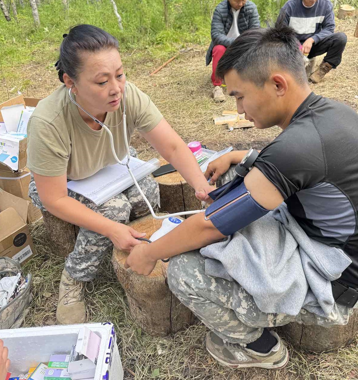 Сэлэнгэ аймгийн Мандал, Ерөө, Хүдэр суманд гарсан ойн түймрийг унтраахаар ажиллаж байгаа алба хаагчдад эрүүл мэндийн тусламж үйлчилгээг газар дээр нь үзүүлж байна.