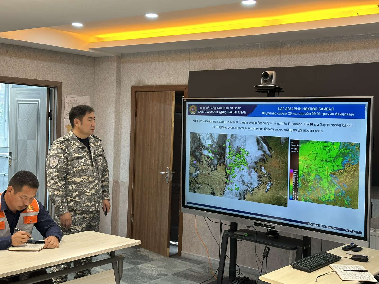 Түүнчлэн үер, усны ослоос урьдчилан сэргийлэх, хариу арга хэмжээг шуурхай зохион байгуулах, төлөвлөх, бэлтгэл, бэлэн байдлыг хангах чиглэлээр нийслэл, аймгийн Шуурхай штабыг мэргэжил, аргазүйгээр ханган, тухай бүрт мэдээллийг хүргэж байгаа юм.