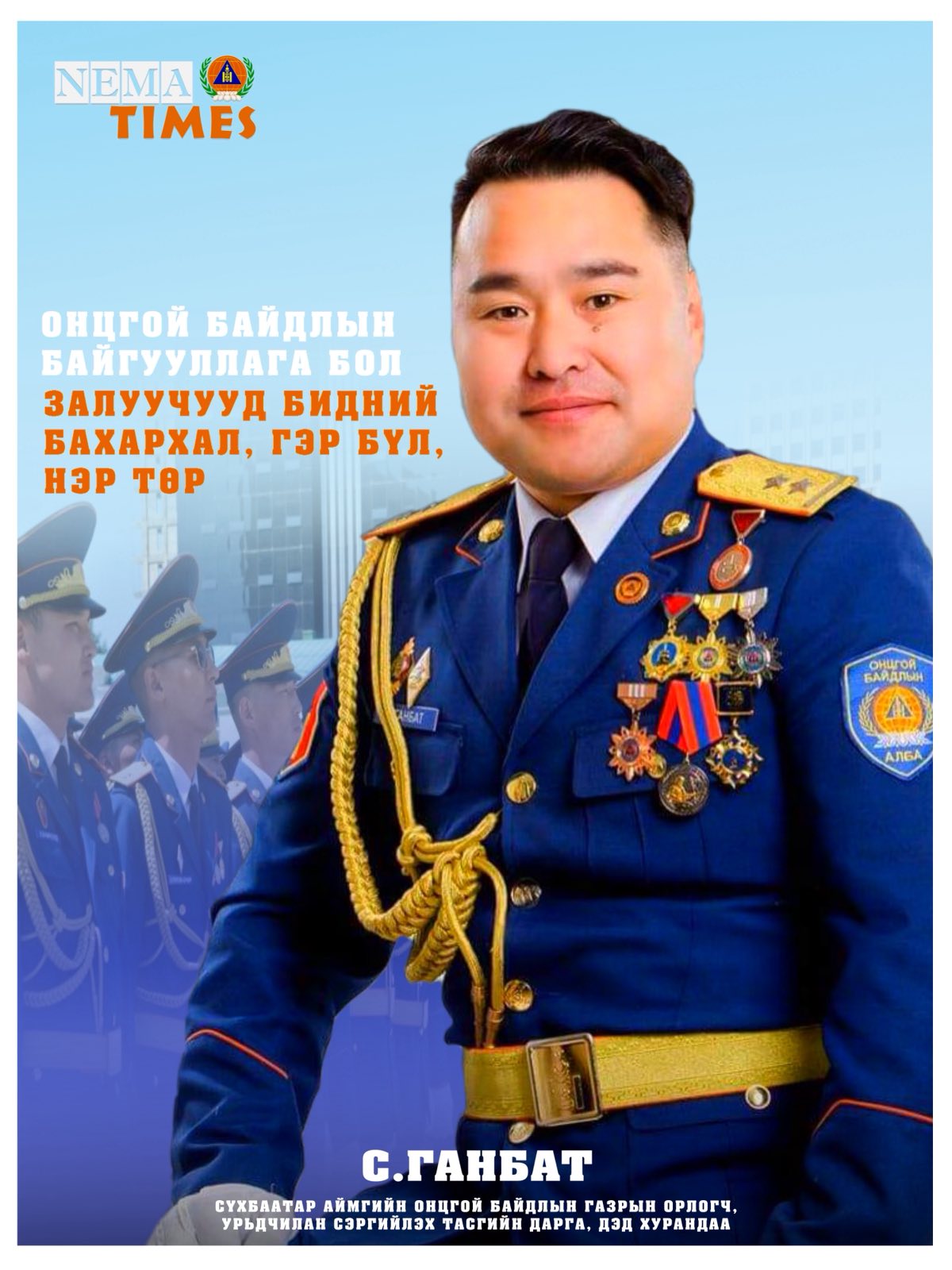 Мөрөөдлөөрөө жигүүрлэж, түүнийхээ төлөө хөдөлмөрлөж, үр шимийг нь хүртэж, амжилтыг “бүтээсэн” олон залуус үе, үеийнхэндээ үлгэр дууриалал болж байдаг онцлогтой. Залуу үеэ сургах, залгамж, халаагаа бэлтгэх нь олон жил ажилласан туршлагаас гадна хийсэн ажил бүрийн онцлог, сурсан мэдлэг бүрийн тэнцлээр бий болдог гэж боддог. Тиймээс энэ жилийг Монгол Улсын Ерөнхийлөгч, Зэвсэгт хүчний Ерөнхий командлагч “Ахлах офицер”-ын жил болгон зарласан. Үүнтэй холбогдуулан nematimes булан энэ удаад Сүхбаатар аймгийн Онцгой байдлын газрын орлогч, урьдчилан сэргийлэх тасгийн дарга, дэд хурандаа С.Ганбатыг урьж, оролцууллаа.