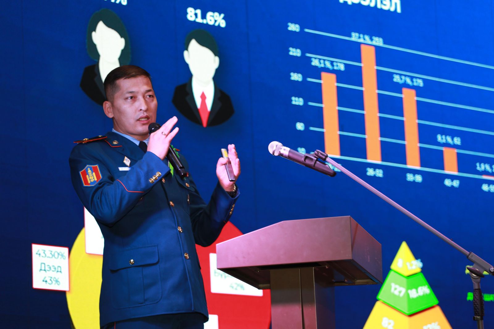 Онцгой байдлын байгууллагаа төлөөлөн ОБЕГ-ын Захиргаа, эрх зүй, хүний нөөцийн газрын хуулийн зөвлөх, хошууч Г.Алтансүх “Ахлах офицеруудын манлайлалд ёс зүй нөлөөлөх нь” сэдвээр илтгэл хэлэлцүүллээ.
