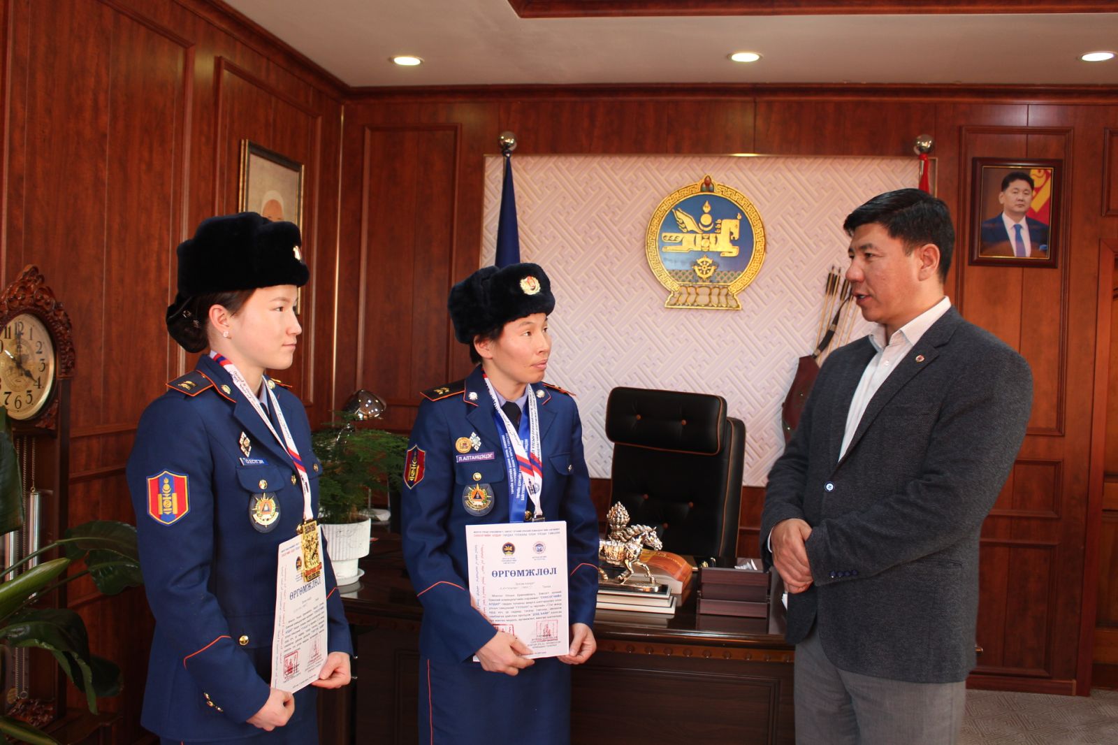 ОБЕГ-ын тэргүүн дэд бөгөөд штабын даррга, бригадын генерал Ц.Ганзориг Монгол Улсын Ерөнхийлөгч, Зэвсэгт хүчний Ерөнхий командлагчийн нэрэмжит “Сонсогчийн алдар” гардан тулааны олон улсын тэмцээнд амжилттай оролцсон тамирчдыг хүлээн авч уулзаж, баяр хүргэлээ.