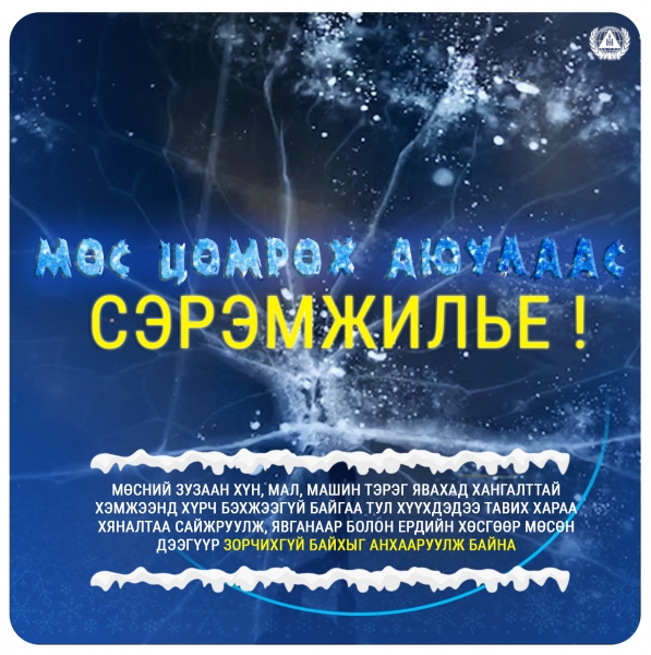Цаашид цаг агаарын хүйтрэлтэй уялдан мөсний зузаан нэмэгдэх хэдий ч нуурын толио болон гол мөрний нийт уртын дагууд харилцан адилгүй, мөсний даац хүн, мал, тээврийн хэрэгсэл явахад хангалттай хэмжээнд хүрч бэхжээгүй байгаа тул цаг хожих, зам товчлох зорилгоор мөсөн дээгүүр явах болон авто тээвэр хийхгүй байхыг онцгойлон анхааруулж байна.
