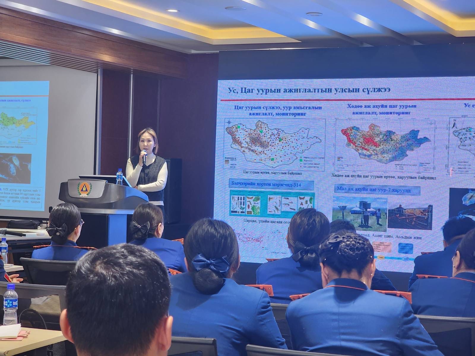 Мөн уур амьсгалын өөрчлөлтөөс үүдэлтэй гамшгийн эрсдэл, Монгол Улсад тохиолдсон аюулт үзэгдэл, ослын статистик мэдээлэл, Онцгой байдлын байгууллагаас авч хэрэгжүүлсэн хариу арга хэмжээний үр дүнг нэгтгэн дүгнэж, оролцогчдын хувийн менежмент, багийн ажиллагаа, манлайлал, харилцааны ур чадварыг хөгжүүлэх мэдлэг, мэдээллийг өглөө.