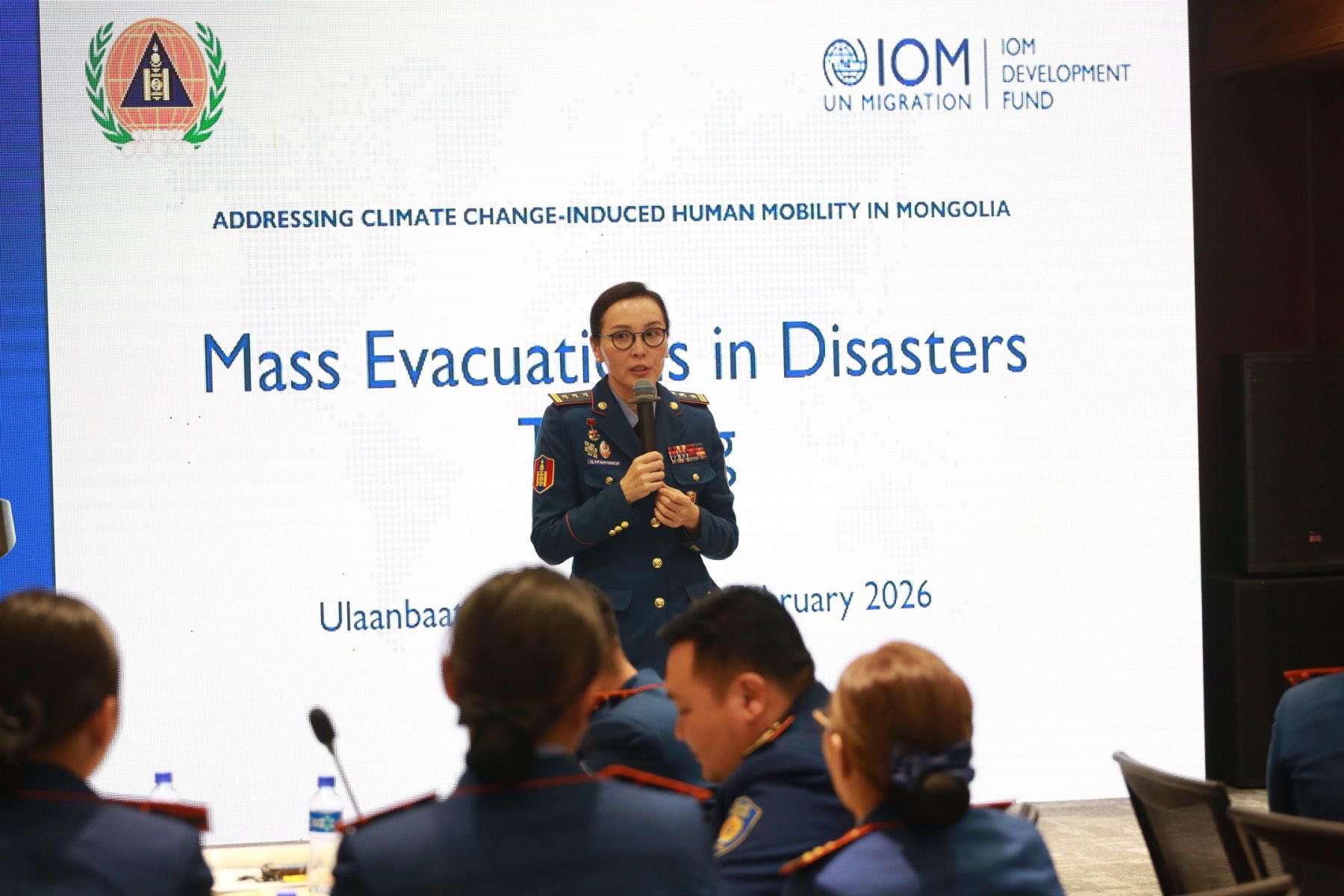 Сургалтын эхний өдрүүдэд гамшгийн үед хүн амыг нүүлгэн шилжүүлэх үйл ажиллагааг оновчтой төлөвлөх, үр дүнтэй хэрэгжүүлэх чадавхыг нэмэгдүүлэхэд чиглэсэн онол, дадлага хосолсон мэдлэгийг алба хаагчдад олгосон юм.
