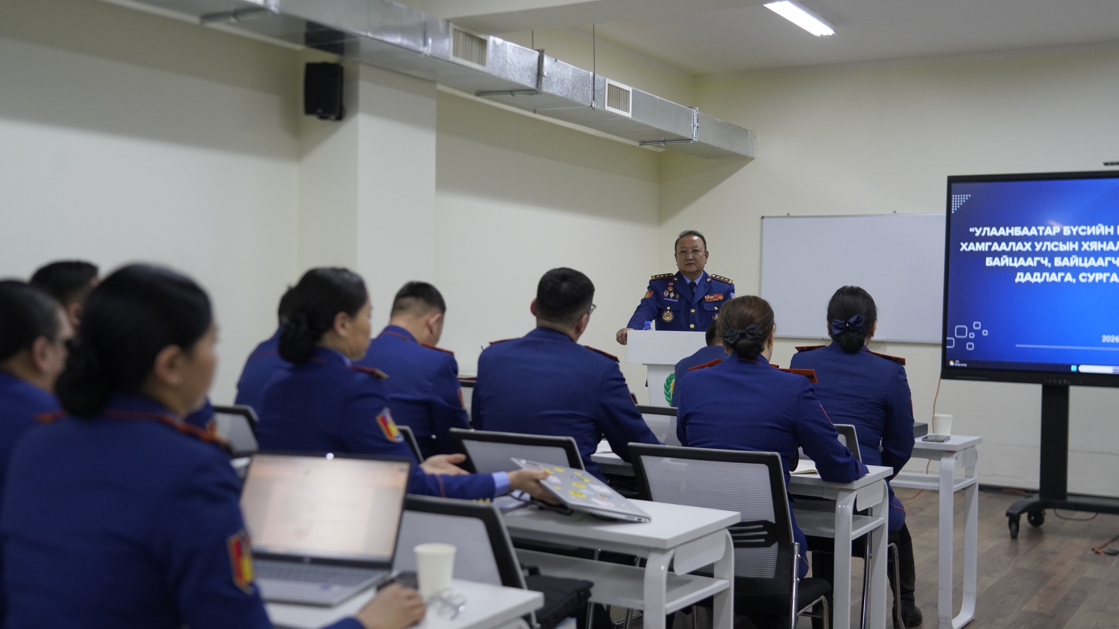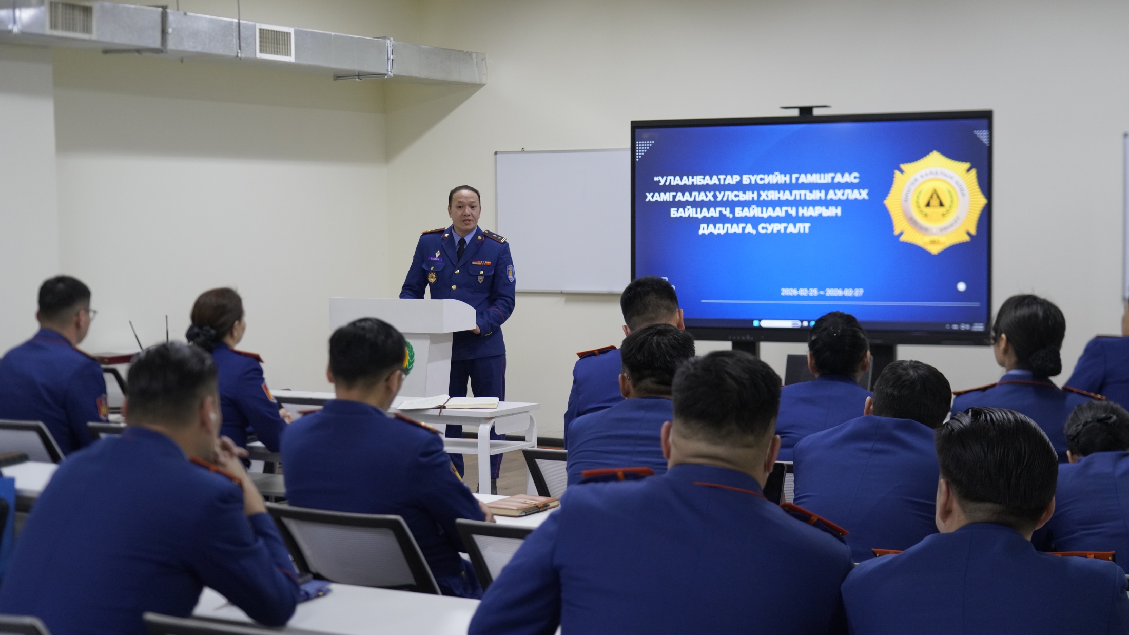 Алба хаагчдад Онцгой байдлын байгууллагын 2026 оны сургалт, бэлтгэлийн нэгдсэн төлөвлөгөөний хэрэгжилт, гамшгаас хамгаалах улсын хяналтыг үр дүнтэй зохион байгуулах, эрх бүхий албан тушаалтны эрх зүйн баримт бичгийг боловсронгуй болгох, зөрчил шалган шийдвэрлэх ажиллагаа, зөрчлийн бүртгэл мэдээллийн нэгдсэн сангийн ашиглалт зэрэг мэдлэг, дадлагыг эзэмшүүлж байна.