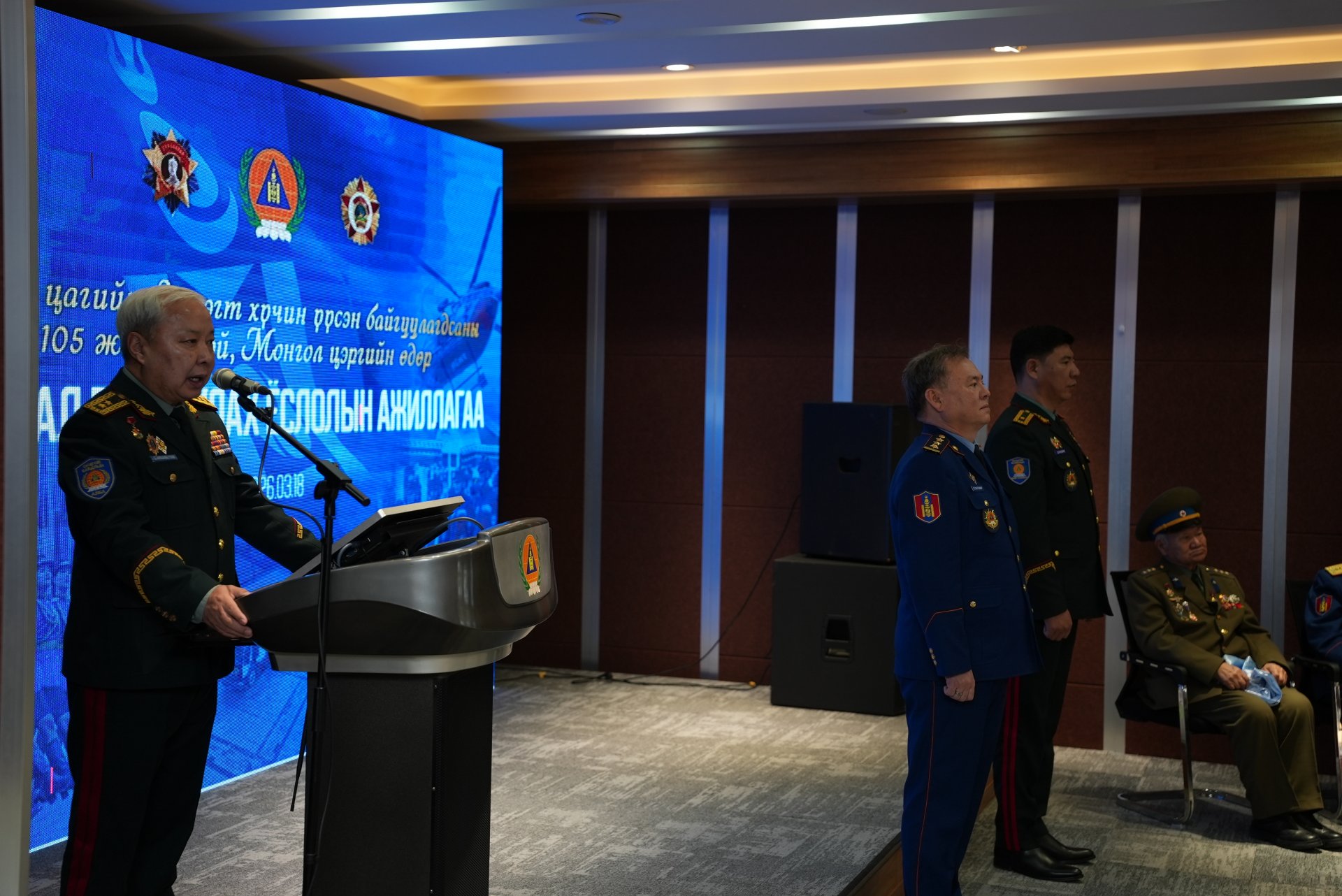 Монгол Улсад орчин цагийн Зэвсэгт хүчин үүсэж хөгжсөний түүхт 105 жилийн ой, “Монгол цэргийн өдөр”-ийг тохиолдуулан Монгол Улсын ерөнхийлөгчийн зарлигаар “Үйлчилгээний гавьяат ажилтан” цол хүртсэн ОБЕГ-ын ахмад ажилтан, бэлтгэл хурандаа Г.Чулуунд ОБЕГ-ын дарга, хошууч генерал Г.Ариунбуян хүндэтгэл үзүүллээ.
