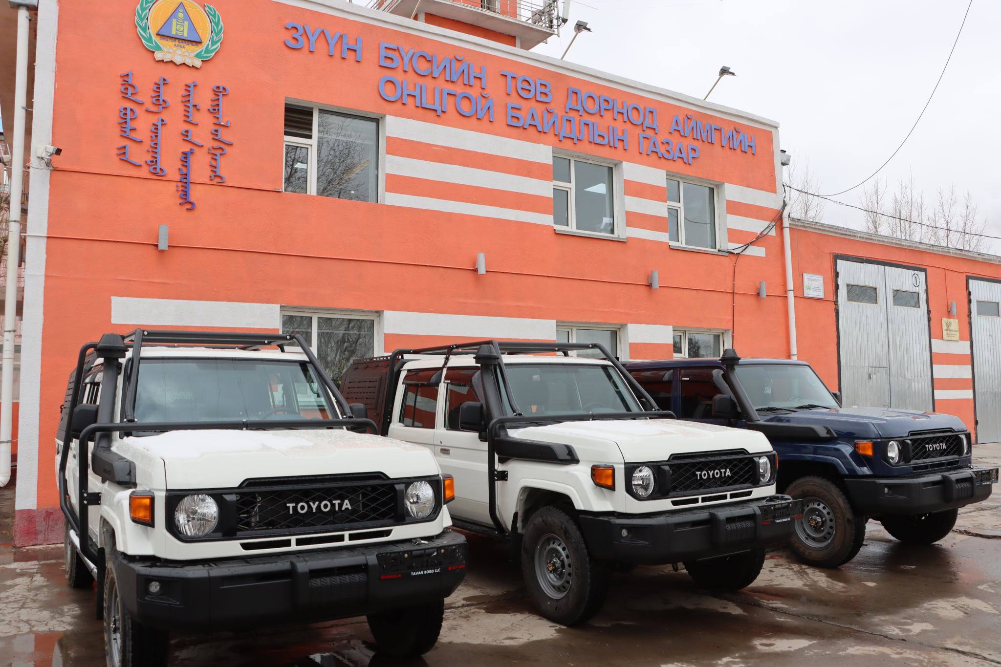 Энэ дагуу Дорнод аймгийн Баяндун, Гурванзагал, Чулуунхороот сумдын Засаг даргын тамгын газарт туулах чадвар сайтай автомашин олгосныг ОБЕГ-ын тэргүүн дэд дарга бөгөөд штабын дарга, бригадын генерал Ц.Ганзориг тус аймагт ажиллах үеэрээ гардуулан өглөө.