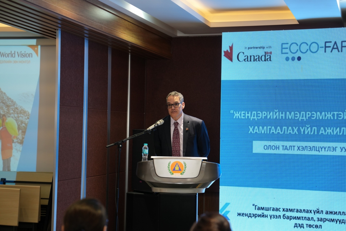 Канад Улсын Элчин сайдын яамны Хөгжлийн хөтөлбөрийн тэргүүн Жан-Стефан Күтюр "Гамшиг нь жендэрийн хувьд саармаг бус бөгөөд эмэгтэйчүүд, охид илүү өртөх хандлагатай байдгийг дурдаж, жендэрийн мэдрэмжтэй хандлага нь нийгмийн бүх бүлгийн тэсвэрлэх чадварыг нэмэгдүүлэхэд чухал болохыг тэмдэглэсэн бол Жендэрийн үндэсний хорооны нарийн бичгийн дарга А.Адилбиш "Жендэр нь зөвхөн хүйсийн асуудал биш нийгмийн бүх бүлгийн ялгаатай хэрэгцээг бодлого, үйл ажиллагаанд тусгах шаардлагатайг онцолсон юм.
