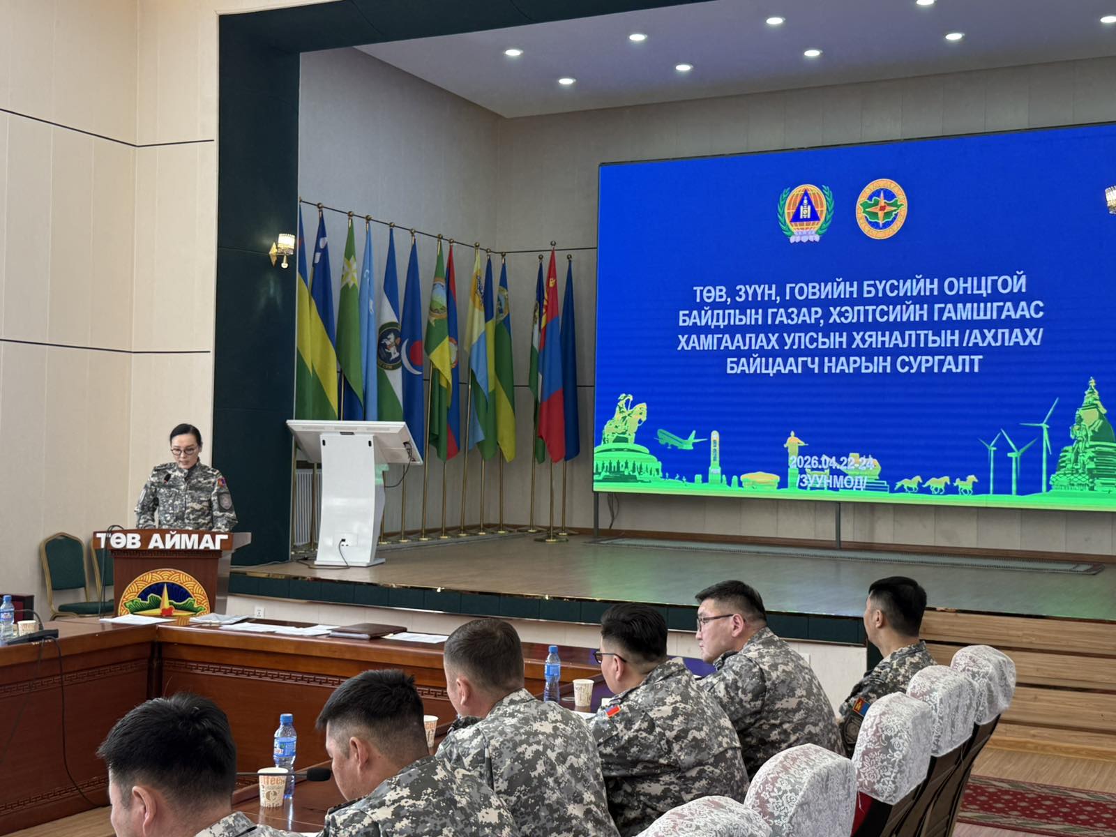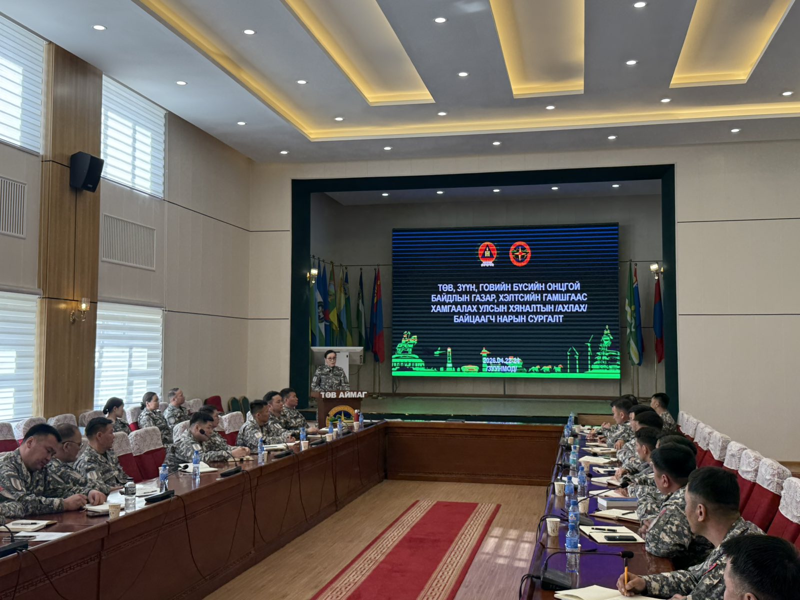 ОБЕГ-ын дэд дарга, хурандаа Ц.Уранчимэг нээж хэлсэн үгэндээ “Гамшгаас хамгаалах улсын хяналтын тогтолцоо нь Монгол Улсын үндэсний аюулгүй байдлыг хангах, гамшгийн эрсдэлийг бууруулах, байгууллага, аж ахуйн нэгж, орон нутгийн бэлэн байдлыг дээшлүүлэхэд чиглэсэн төрийн хяналтын чухал бүрэлдэхүүн хэсэг юм. Энэхүү сургалт, дадлагын нэг онцлог нь хамрагдаж байгаа аймгуудын нутаг дэвсгэр, нийгэм, эдийн засаг, байгаль, цаг уурын нөхцөл байдал харилцан адилгүй, улмаар гамшгийн эрсдэл, эмзэг байдал нь ч өөр өөр байгаа явдал юм. Ийм ялгаатай нөхцөлд гамшгаас хамгаалах улсын хяналтыг нэг хэвийн загвараар бус, тухайн орон нутгийн онцлог, эрсдэлийн зураглал, эмзэг байдлын үнэлгээнд тулгуурлан хэрэгжүүлэх нь зүйтэй. Өөрөөр хэлбэл, хяналт шалгалтын үр нөлөө нь зөвхөн хууль, дүрмийн хэрэгжилтийг шалгахад бус, тухайн орон нутгийн бодит эрсдэлийг зөв тодорхойлж, түүнд нийцсэн бэлэн байдал, төлөвлөлт, хариу арга хэмжээний чадамжийг үнэлж байж хангагдана” гэлээ.
